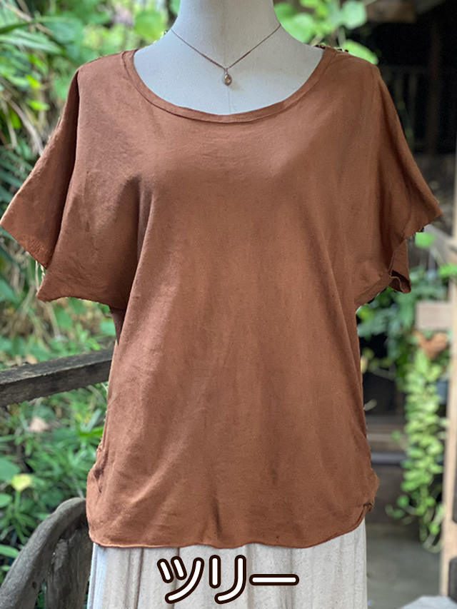 製品名: asana ヘンプコットン 薄手 ギャザー Tee・草木染め