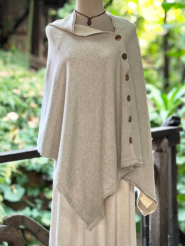 asana ヘンプコットン ふかふか 2WAY ポンチョ・草木染め