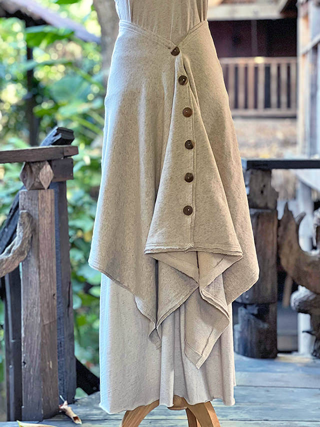 個性的な裾のラインがとても綺麗なヘンプワンピース