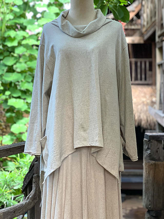 asana ヘンプコットン 厚手 ゆったり ハイネック ブラウス・草木染め