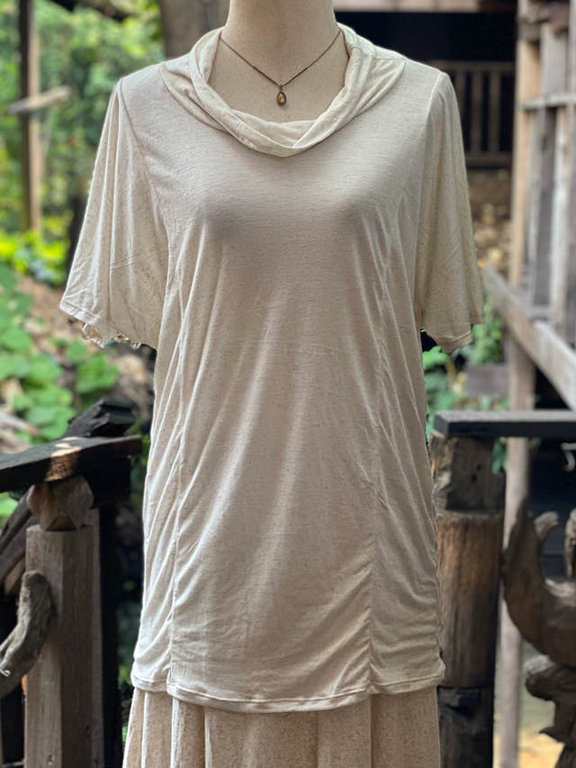 asana ヘンプコットン テロテロ ゆったり ハイネック ブラウス・きなり