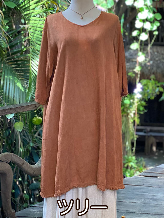 asana HEMP100% テロテロ ゆったり チュニック ワンピース・草木染め (15色)