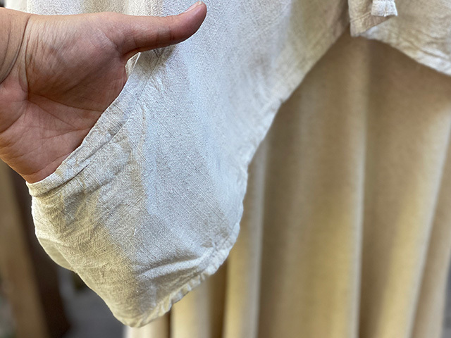 きめ細かいヘンプ100%の糸で、特殊な機械織をした、とても柔らかな、信じられないくらい、氣持ちいい生地です。一度着たら脱げなくなるぐらいで、はまってしまいます。色落ちが気にならない、カラーバリエーションもあります。