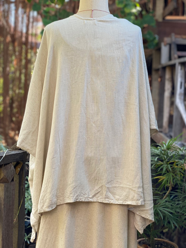 asana ヘンプコットン 厚手 フレアースリーブ・きなり