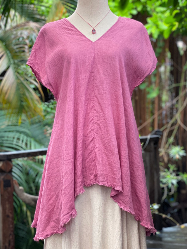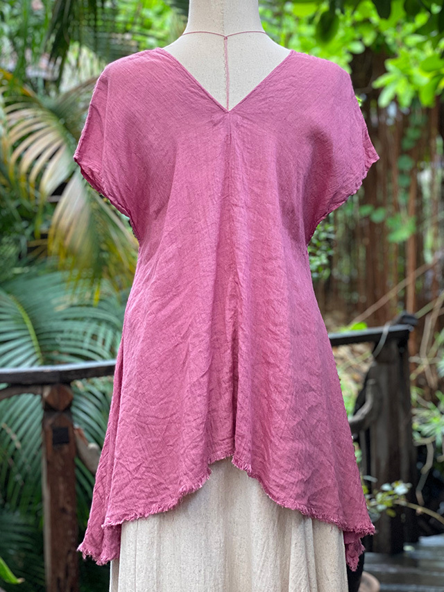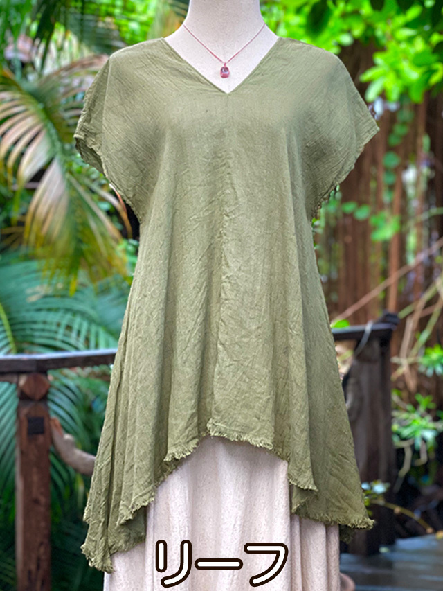 asana 麻100% 薄手 ひらひら 貫頭衣シャツ・草木染め (16色)