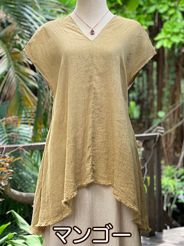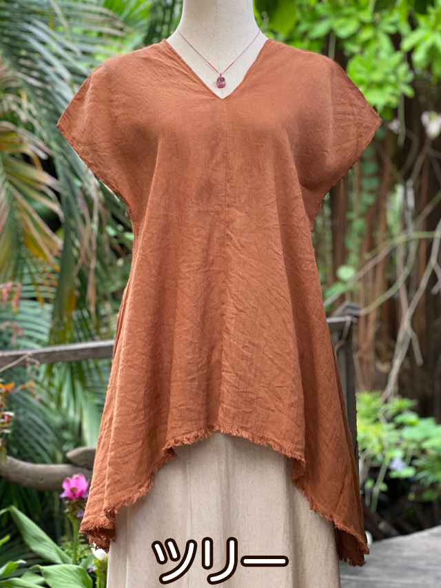 製品名: asana 麻100% 薄手 ひらひら 貫頭衣シャツ・草木染め