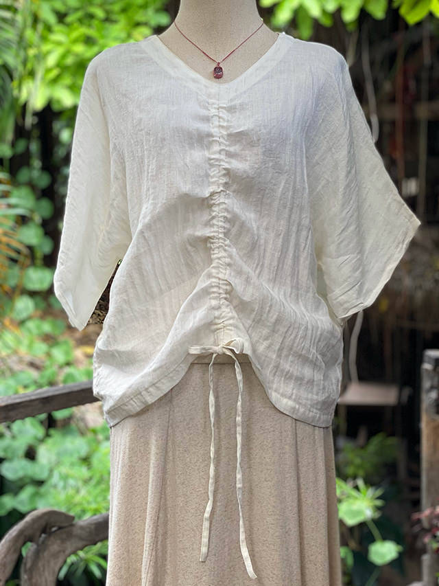 製品名: asana HEMP100% ガーゼ 切り替え ギャザー ブラウス・きなり