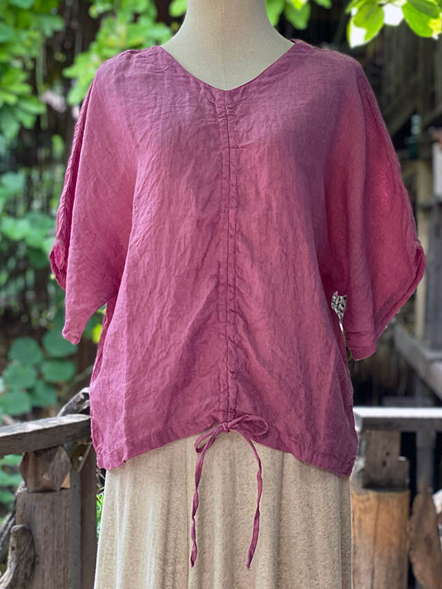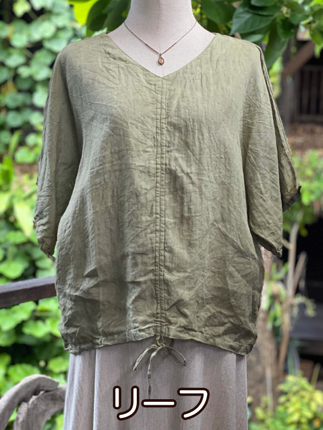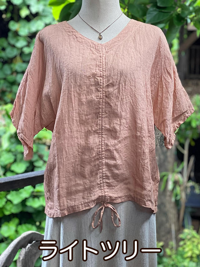 asana HEMP100% ガーゼ 切り替え ギャザー ブラウス・草木染め (12色)