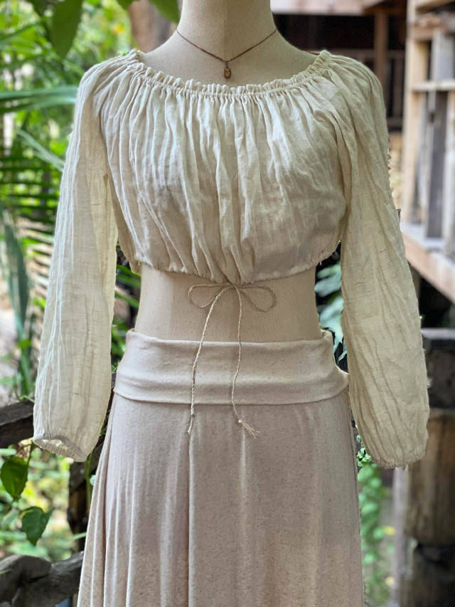 asana 麻100% ふわふわ ショート ブラウス・きなり