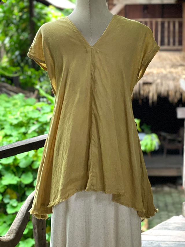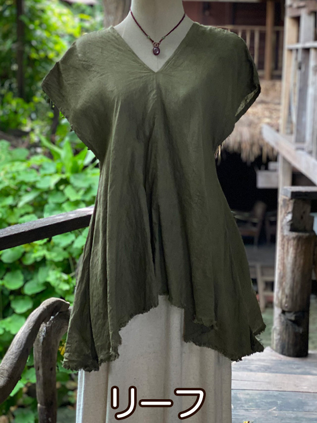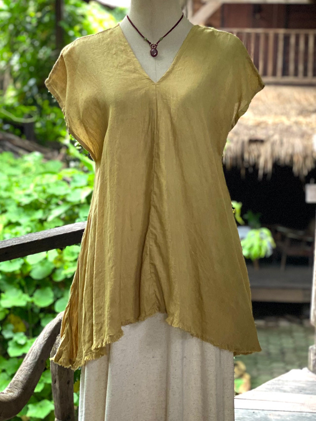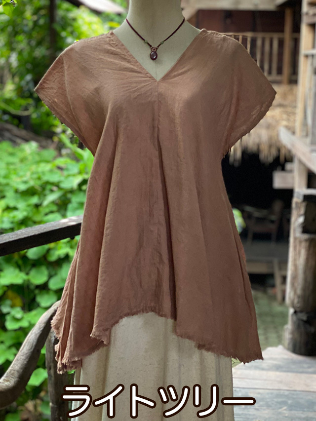 製品名: asana 麻100% NEW ひらひら 貫頭衣 シャツ・草木染め