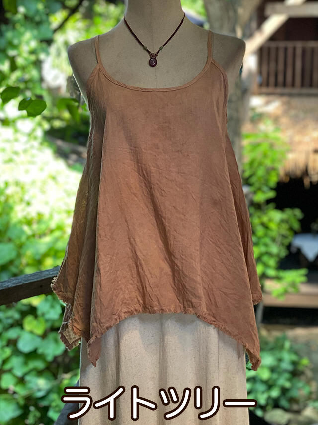 asana 麻100% フリンジ ゆったり キャミソール・草木染め (10色)