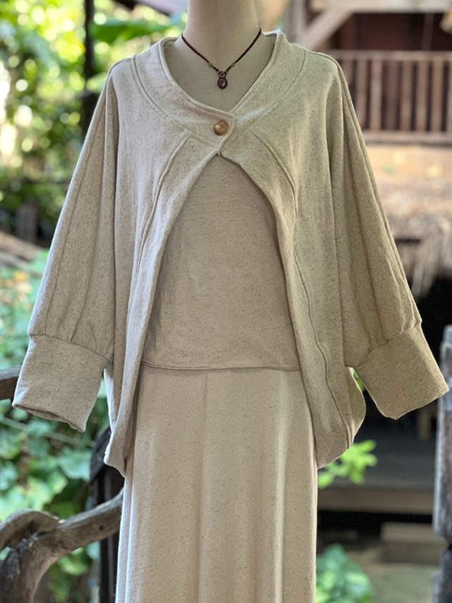 payakaさんの服は真冬でも着たいけどタイと違って日本は冬は寒いので、長袖のマキシ丈のワンピースなど(asana ヘンプコットン 厚手 カシュクール風 ロング ワンピース・きなりなど。ふかふかバージョンも良いですが、ちょっと丈が短いのと、ふかふかでもやっぱり冬はそれだけだと寒いです)もう少し袖をゆったりとさせて下にあったかインナーを着られるようして頂いり、こういった羽織も真冬の日本に対応したものが創られたら良いなぁと思いました。