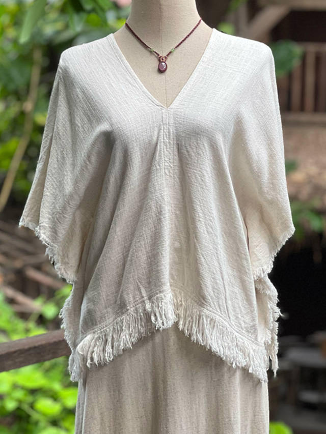 • asana HEMP100% テロテロ フリンジ ショート 貫頭衣・きなり