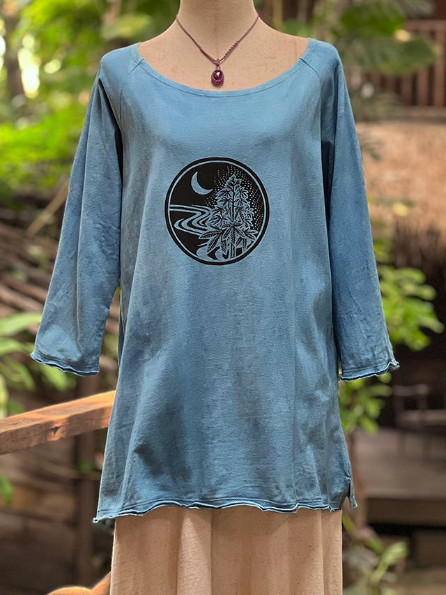 asana ヘンプコットン 厚手 七分袖 ラグラン Tee・手刷りプリント 草木染め (2色)