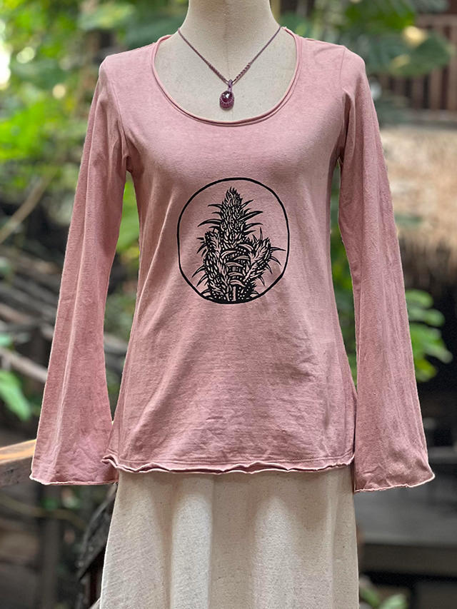 製品名: asana ヘンプコットン 厚手 フレアースリーブ・手刷りプリント 草木染め