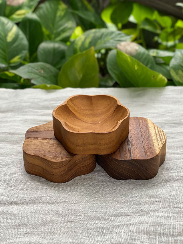製品名: チークWOOD 花形 小皿