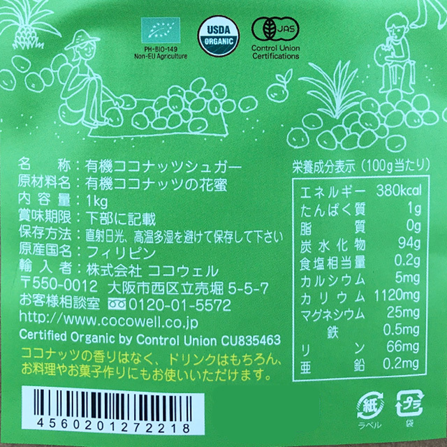 香ばしくて美味しいココナッツの花蜜糖。黒糖のようなコクがありながら後味さっぱり。上品な甘みが特徴です。コーヒーや料理の他、お菓子づくりにも。一般の砂糖とおなじようにご利用いただけます。