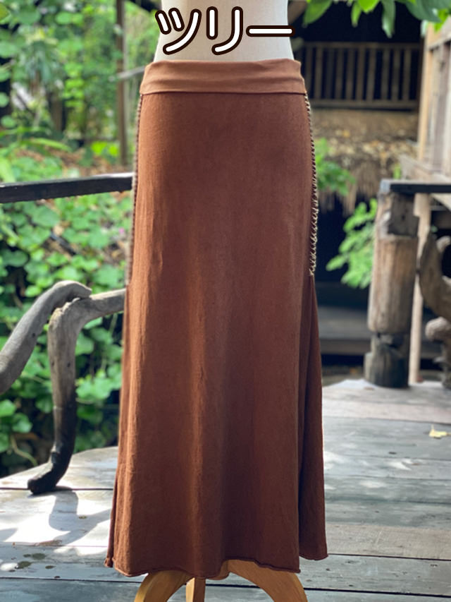 製品名: asana x chewin'bacco ヘンプコットン 厚手 タイト スリット ロングスカート・草木染め