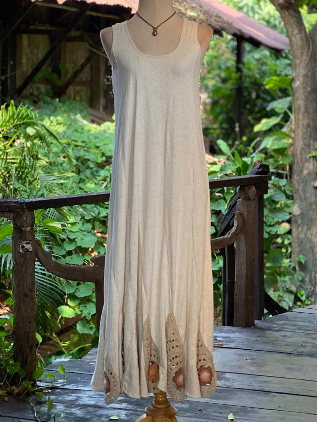 製品名: asana x chewin'bacco ヘンプコットン 薄手 切り替え ロング ワンピース・きなり (1点もの)