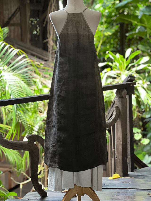 製品名: Karma HEMP100% 手織り ノースリーブ ワンピース・草木染めグラデーション