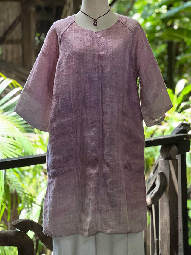 やさしいロータス色で、裾と袖先はほんのり薄い色に仕上がっています。