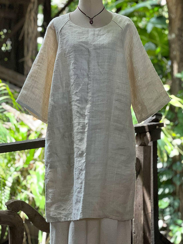 製品名: Karma HEMP100% 手織り ロングスリーブ ワンピース・きなり
