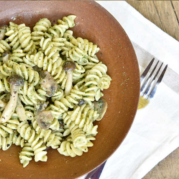 生クリームとあしたばソースで「あしたばクリームパスタ」