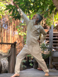 タイ産のオーガニックヘンプ糸とコットン糸で機械編みした、厚手のしっかりとした生地です。 ナチュラル感たっぷりでとても氣持ち良く、長持ちします。 柔らかい糸にこだわっているため、ヘンプ糸がとても細くて、シーズンによって、毎回質感も多少変わってきます。 そして、たまに糸が切れて小さな穴が空いてしまいますが、手仕事でチクチクしていますので、ご了承くださいませ。 これも自然の法則と思い長い間やってきています。 ご理解して頂きありがとうございます。