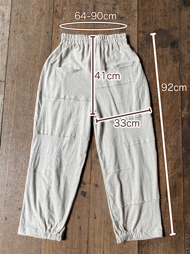 asana ヘンプコットン 厚手 パッチワーク スウェット パンツ・きなり