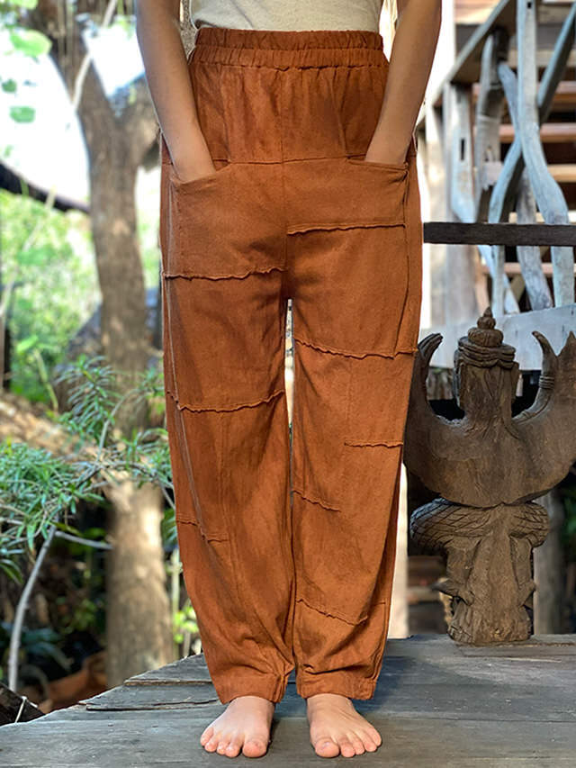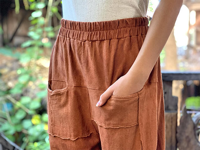 asana ヘンプコットン 厚手 パッチワーク スウェット パンツ・草木染め (7色)