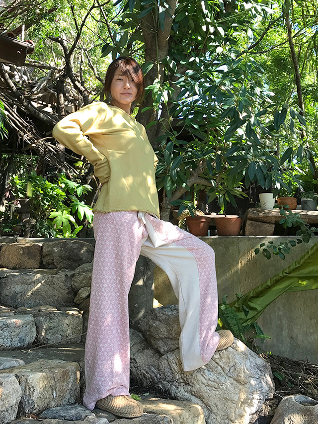 製品名: asana ふかふか 麻柄プリント タイパンツ