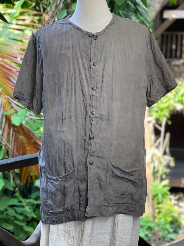製品名: asana HEMP100% ガーゼ ボタン 半袖シャツ・草木染め