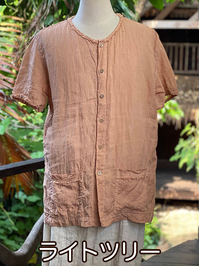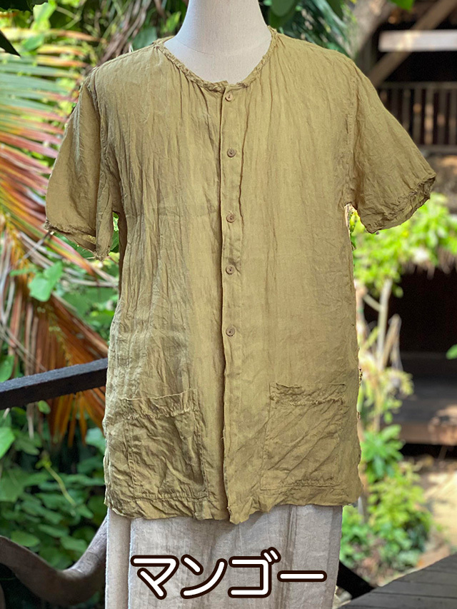 asana HEMP100% ガーゼ ボタン 半袖シャツ・草木染め (9色)