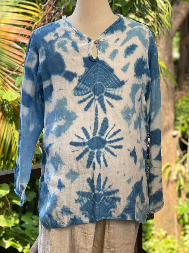 asana HEMP100% ガーゼ ゆったり ロングスリーブ・インディゴ絞り染め (6種)