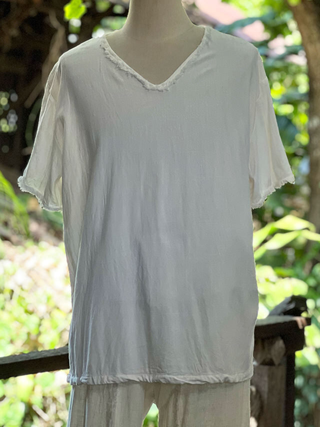 製品名: asana HEMP100% Vネック フリンジ シャツ・きなり