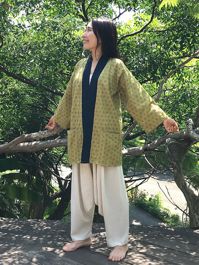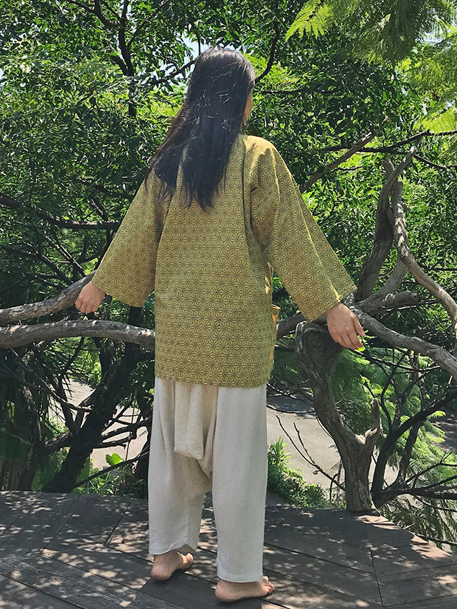 目の細かいHEMP100%の生地で作った草木染めのタイパンツ