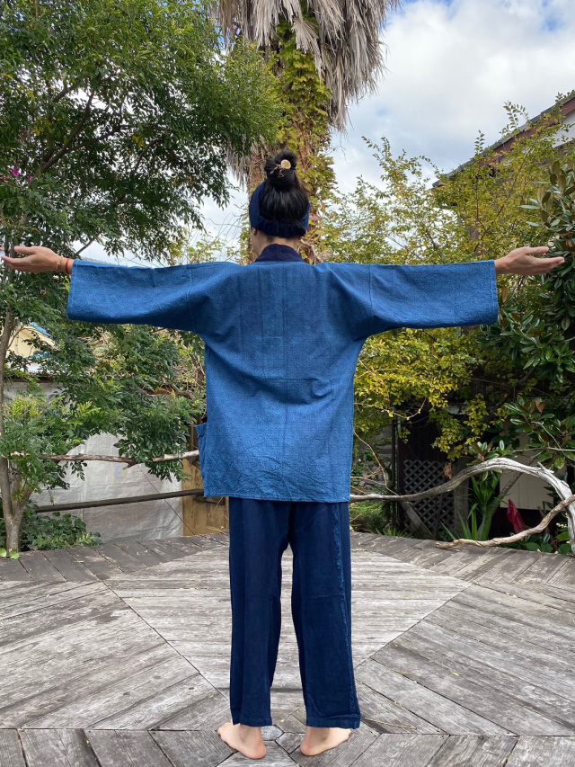 ※お品物は、染色し、乾かした状態で出荷していますので必ず着用前に一度洗濯してください。なお洗濯には自然に優しい洗剤をご利用いただき、特に蛍光剤などが入った「合成洗剤」のご利用は激しく色落ちしますのでお控えください。