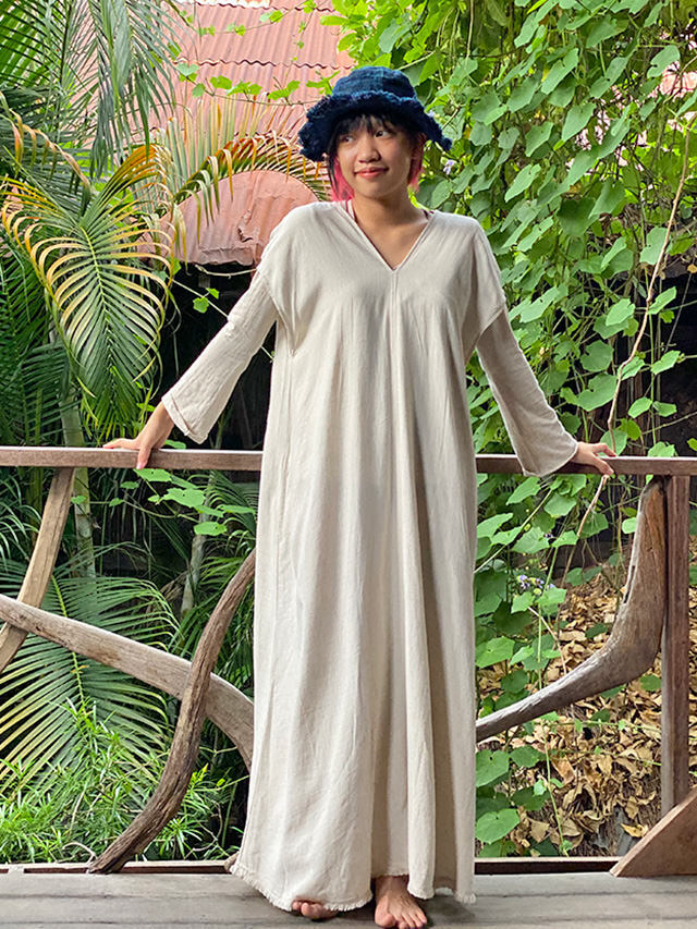 asana HEMP100% テロテロ 貫頭衣 ロング ワンピース・きなり