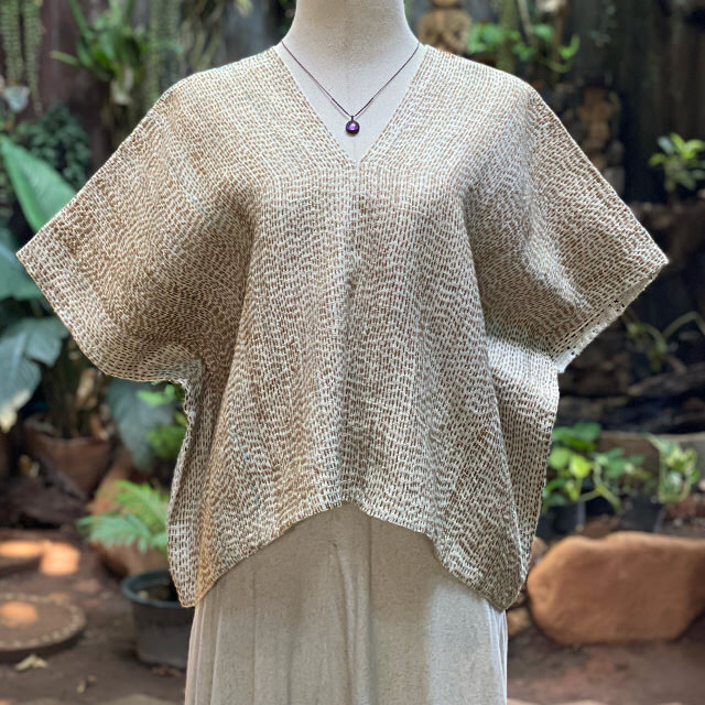 製品名: HEMP100% 手織り 刺し子 貫頭衣 (1点もの)