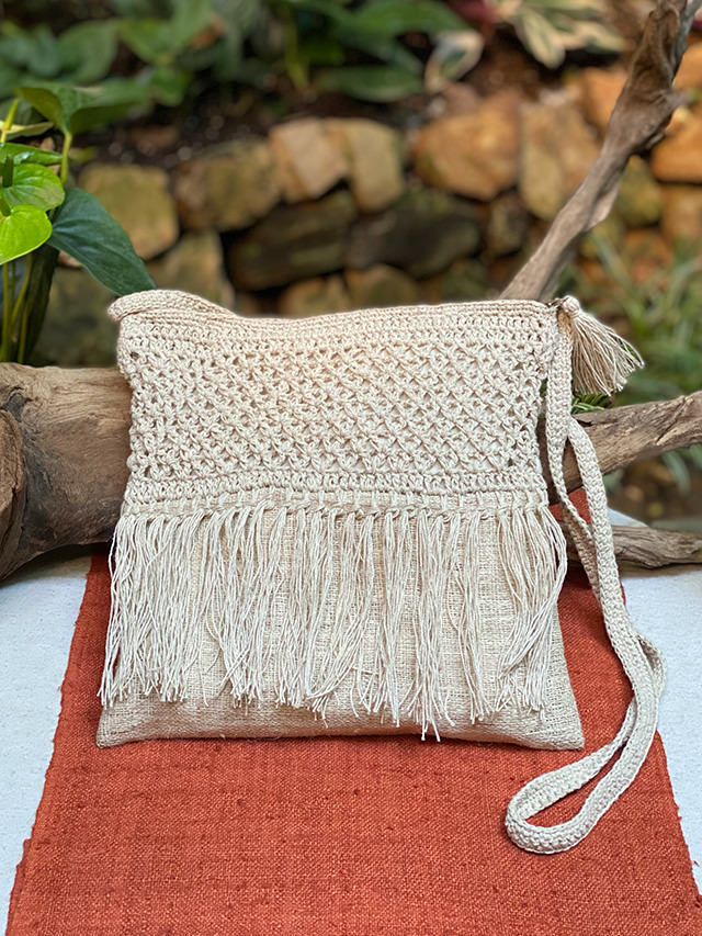 製品名: HEMP100% ハニカム編み フリンジ ショルダーバッグ