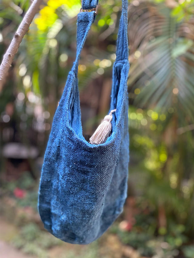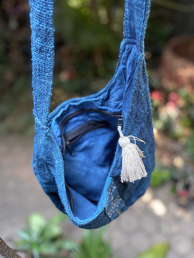 HEMP100% 麻柄手刺繍 手織り ショルダーバッグ・草木染め