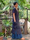 asana HEMP100% 手縫い ロング 貫頭衣・ネイビー