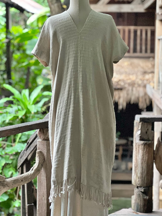 HEMP100% 厚手 手織り手縫い 貫頭衣 ショート ワンピース・きなり
