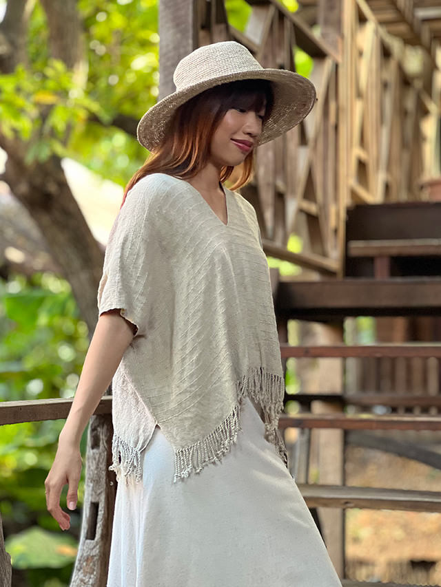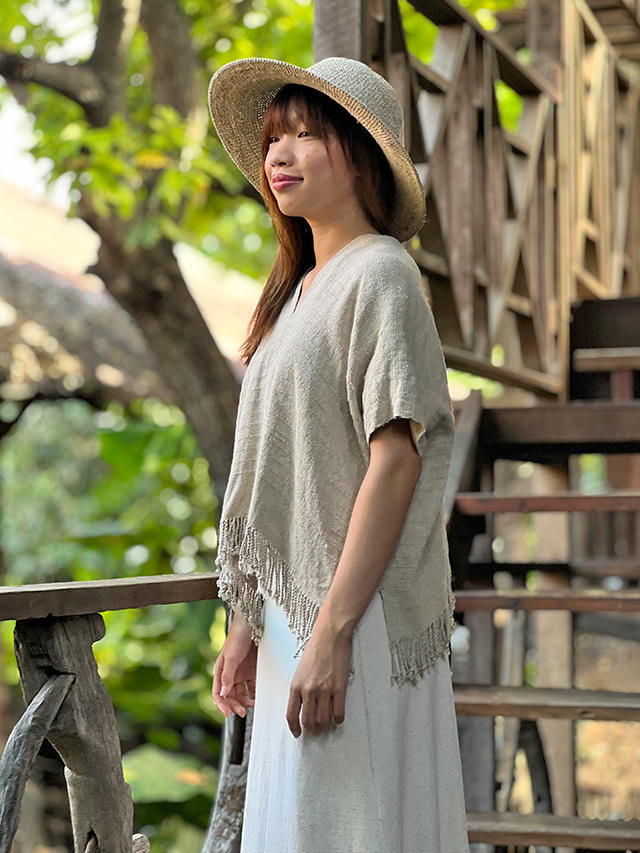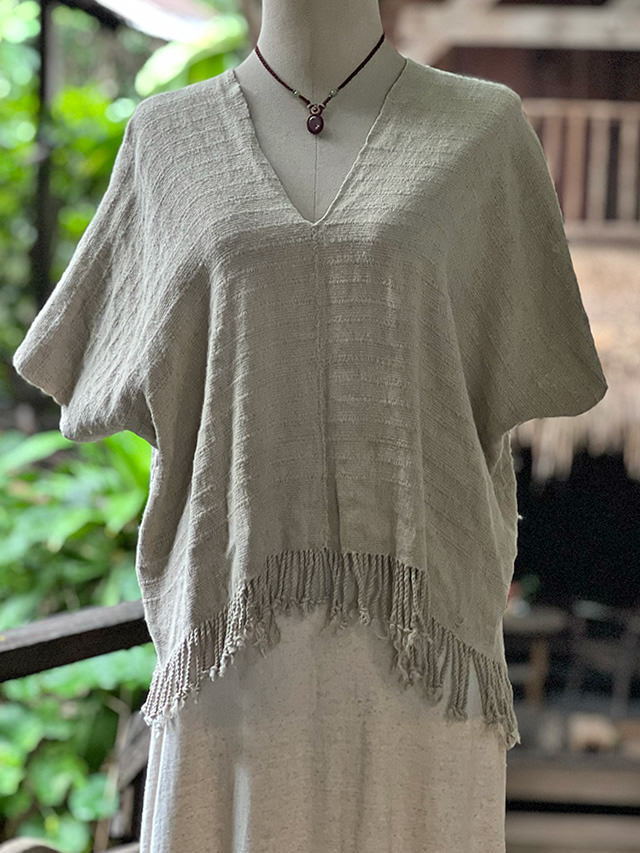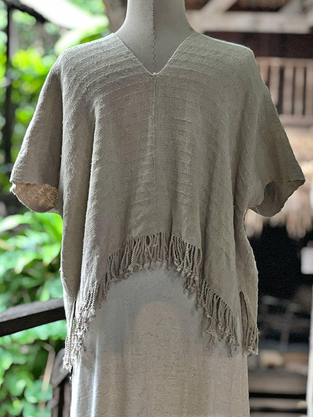 HEMP100% 厚手 手織り手縫い 貫頭衣 ショート シャツ・きなり