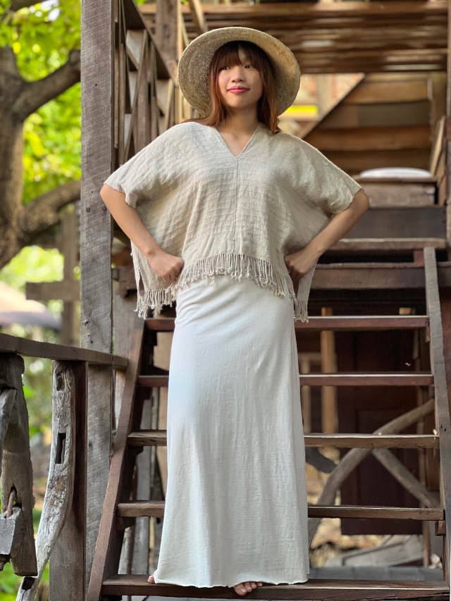 asana ヘンプコットン 厚手 ロング スカート・きなり